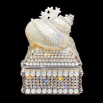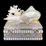 • Premium Crystals • Size: 4.5 x 2.625 x 4 • Natural Coral & Seashells • Interior Felt Lining • Proudly Designed and Handcrafted in the USA Looking for a lavish...